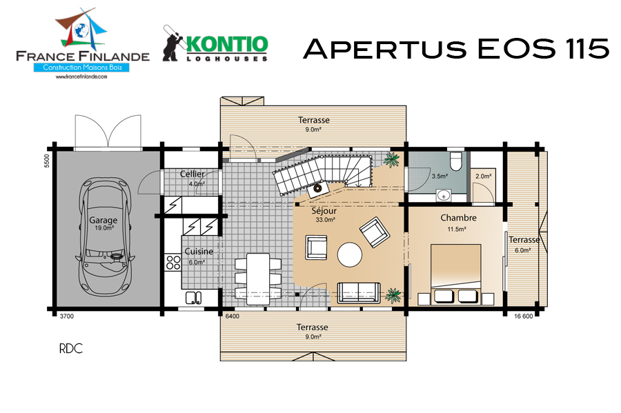 Rez-de-chaussée 60 m2 1er étage 55 m2 Terrasse 24 m2 Carport 19 m2