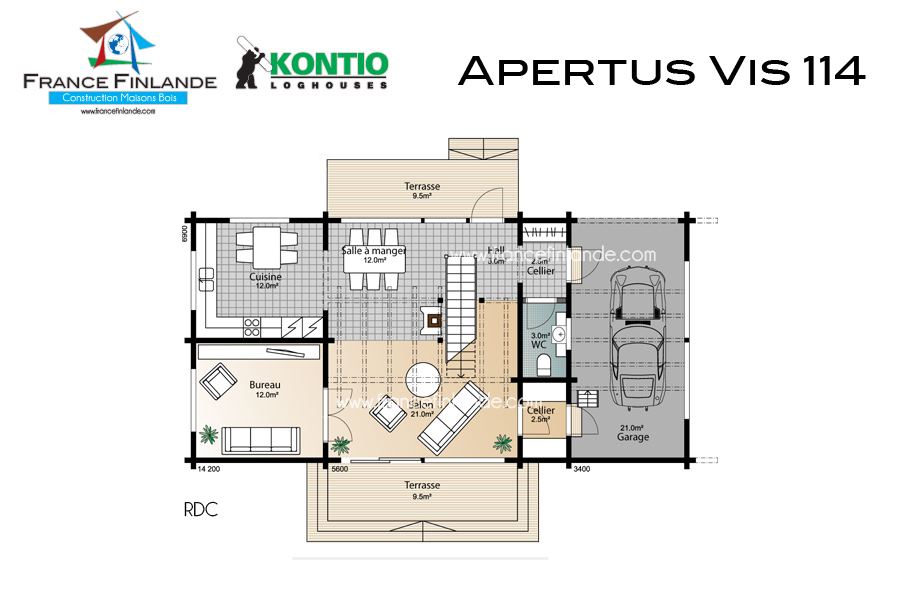 Rez-de-chaussée 70 m2 1er étage 44 m2 Terrasse 19 m2 Carport 21 m2