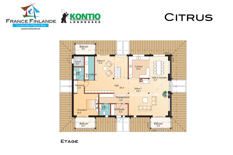 en madriers de 95 mm contrecollés.
